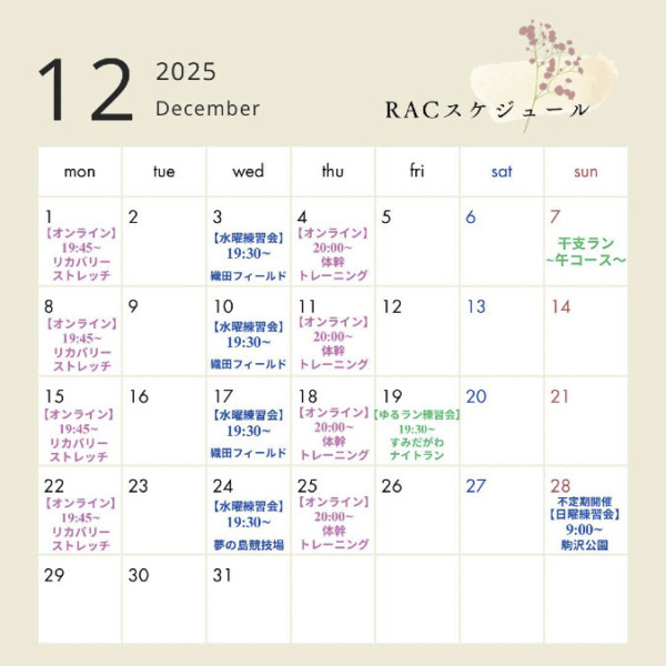 RAC12月スケジュール🗓️