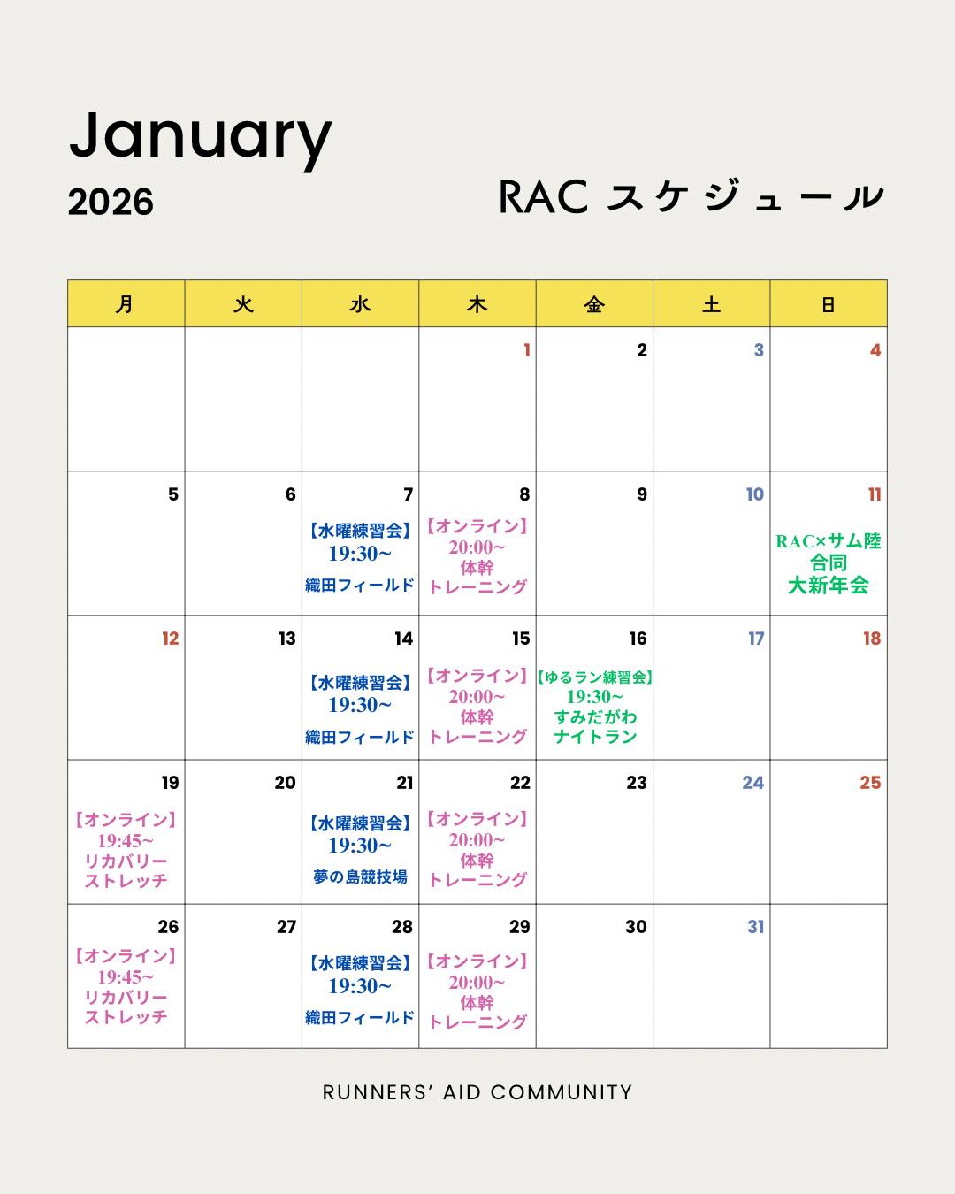 RAC1月スケジュール🗓️