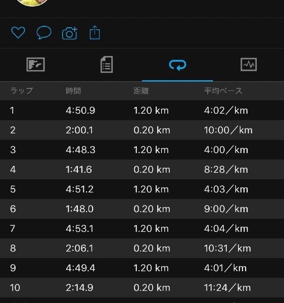インターバル練習1.2キロ5本